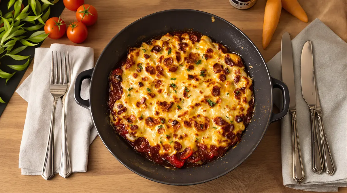 Il suffit d’ouvrir le four pour que les parfums de tomate, de thon et de fromage gratiné envahissent la cuisine. On entend le léger crépitement du fromage qui dore encore. Un vrai plat de famille, simple, généreux, qui rappelle les soirées tranquilles après une longue journée.